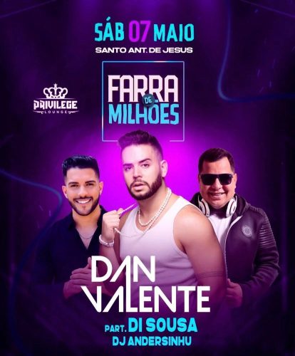 Atrações: Dan Valente, Di Sousa e Dj Andersinhu